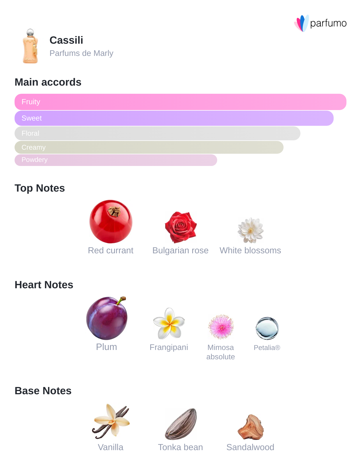 Cassili: Joyous, sparkling and spontaneous. This irresistible and delicious fragrance is a blend of velvety fruits and pastel flowers, with a sprinkle of vanilla and wood. Cassili is a truly original scent with a radiant sillage designed as a manifesto for new generations of aesthetes.