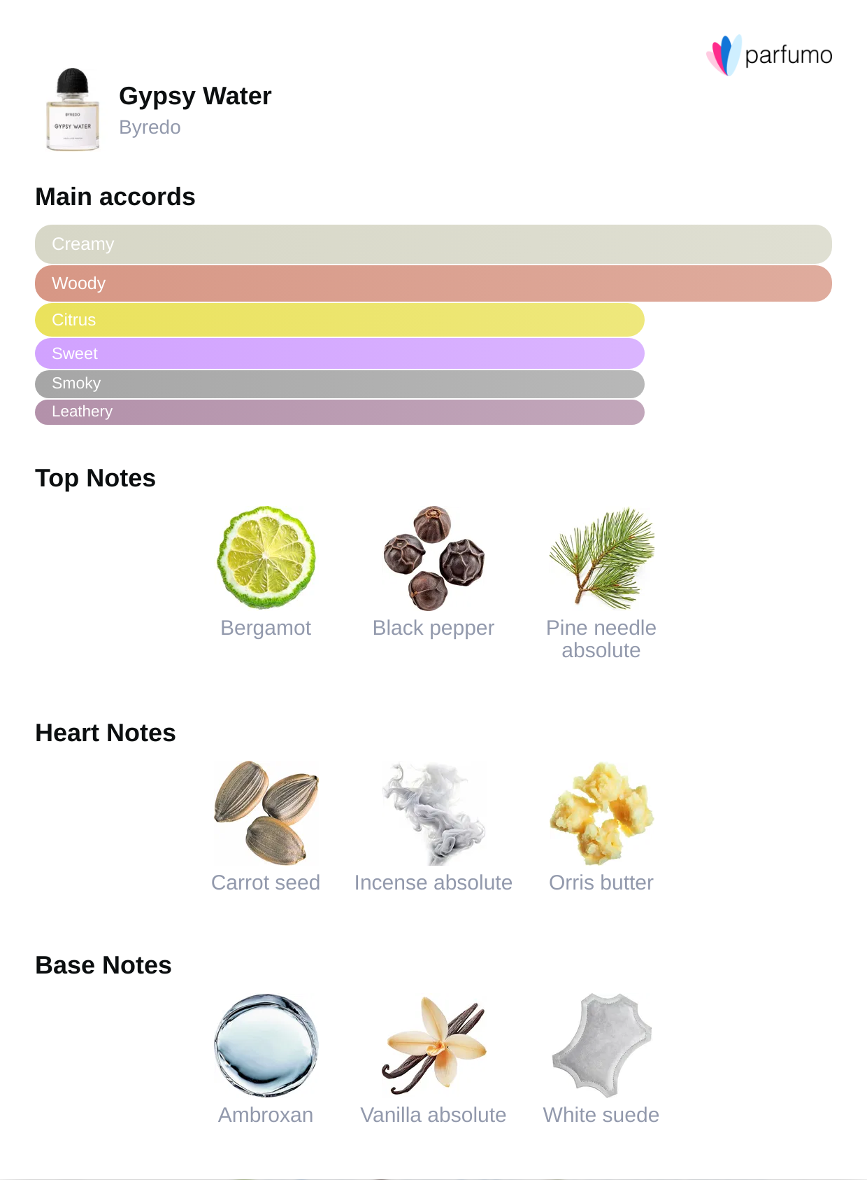 This Absolu edition deepens the tribute to a lifestyle shaped by freedom, wandering, and instinct. Inspired by the nomadic imagination of the Romani people, Gypsy Water evokes a direct relationship with the world, guided by movement and the open air. Carrot seed opens with a dry, earthy sensation, evoking the warm soil trodden along the roads. Iris, at the heart, brings a powdery, muted softness, an intimate counterpoint to the call of the great outdoors. Finally, musk and ambrox envelop the skin in lingering warmth, while pine and ethyl maltol prolong the impression of a camp under the trees, between resin, heated wood, and subtle traces of smoke.