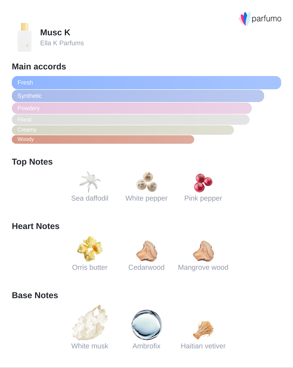 Musk K: The pristine white sands of the wind-sculpted dunes contrast with the many crystal-clear shades of blue, from aquamarine and turquoise to the emerald green of the lagoons. Musc K opens the score with a bright and fresh salty breeze of sand lily.