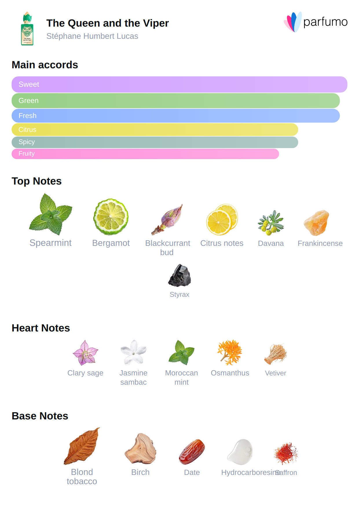 Top Notes: Bergamot – Citrus – Blackcurrant buds – Spearmint – Davana – Incense – Styrax