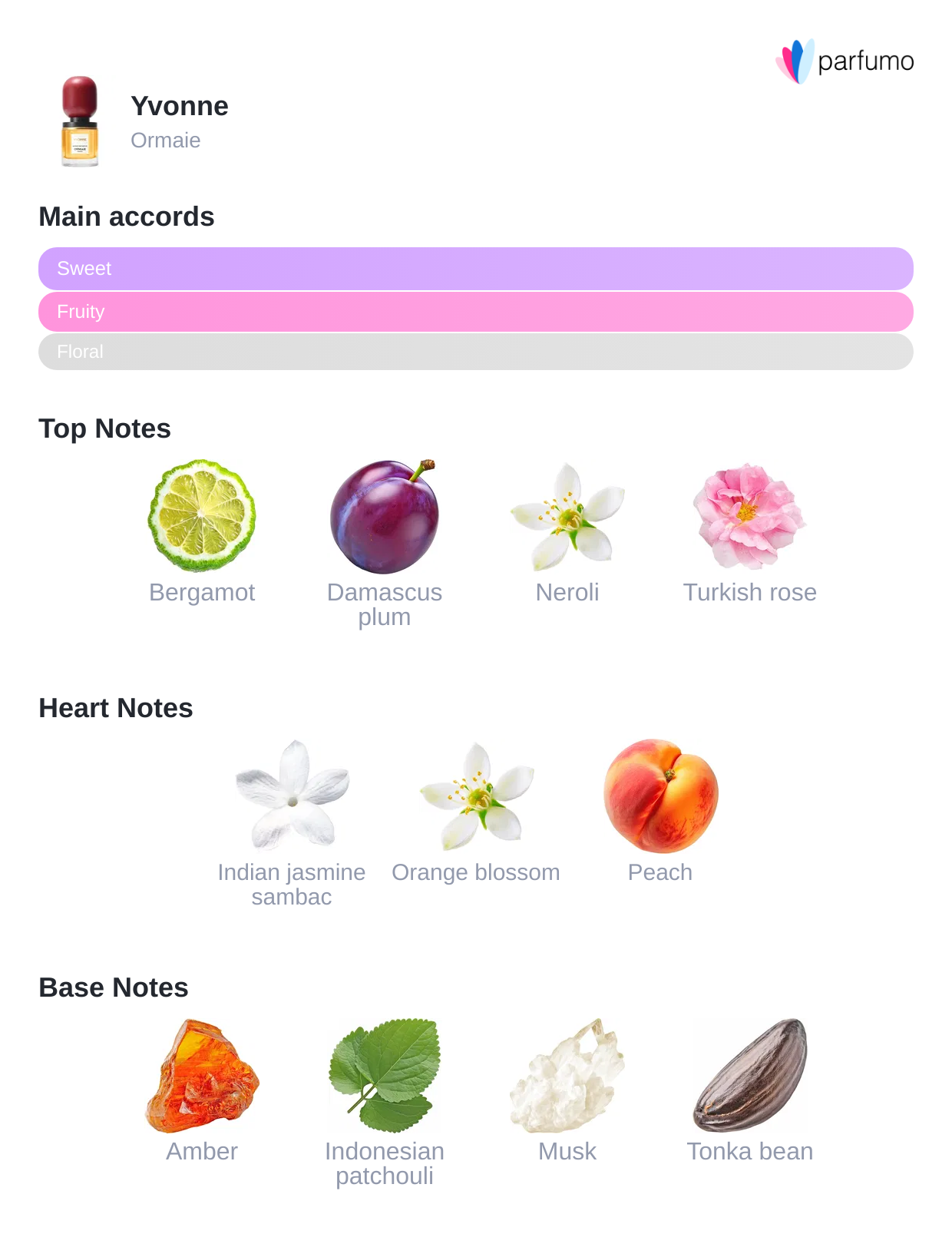 Yvonne Extrait de Parfum: The new damascus plum added to the fragrance compliments the red fruits of Yvonne, contrasting with the patchouli overdose. The liquorice edge gives the fragrance a deeper and opulent character. The ORMAIE fragrances are made of exceptional raw materials. Yvonne Extrait de Parfum is composed of 95% natural ingredients.